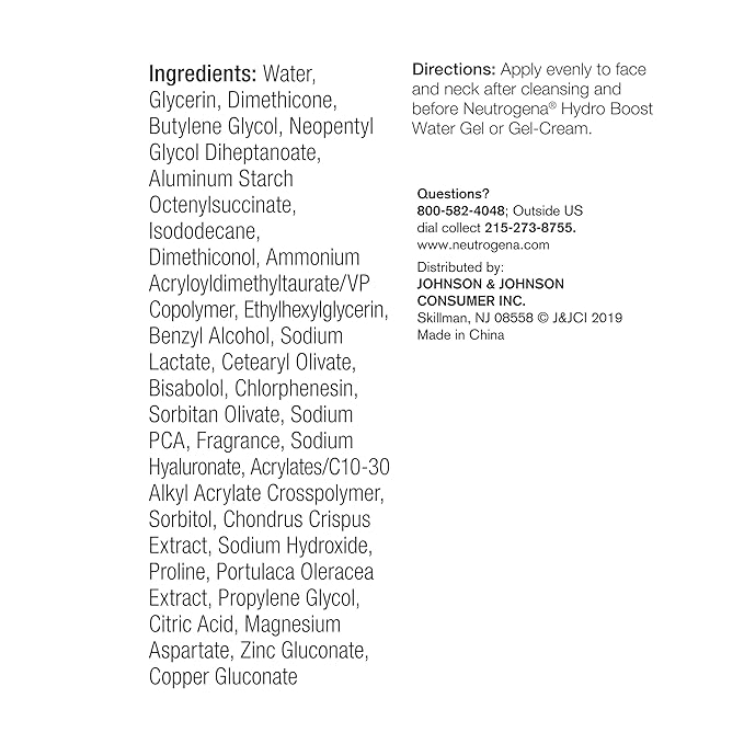 - Facial Moisturizer: This hydrating face serum is easy to use and can be worn under makeup; simply apply evenly to face and neck after cleansing, or pair with other products from the Neutrogena Hydro Boost collection