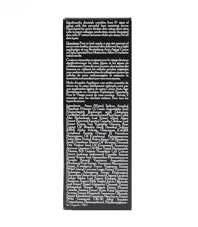 - How It Works: Our men’s face serum uses an exclusive combination of powerful, natural ingredients. It penetrates quickly into the skin to firm, restore and revive collagen production.