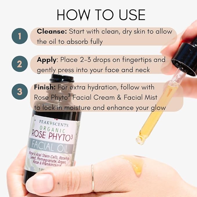 - HIGH QUALITY: Peak Scents is committed to providing high-quality products. This Organic Rose Phyto Facial Oil is no exception. The face oil is a premium skincare product that delivers excellent results, especially when paired and layered with our facial cream.