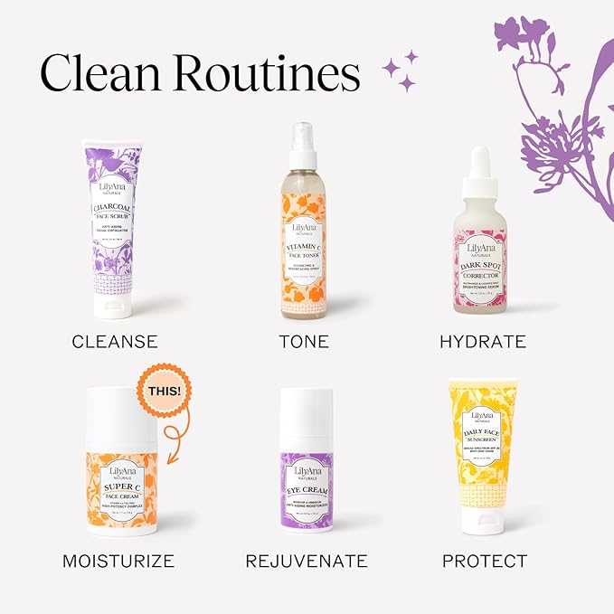 LilyAna Naturals Face and Neck Moisturizer for Women and Men - Moisturizer Face and Neck Cream for Dry Skin and Dark Spot Brightening (Super C, 1.7oz)