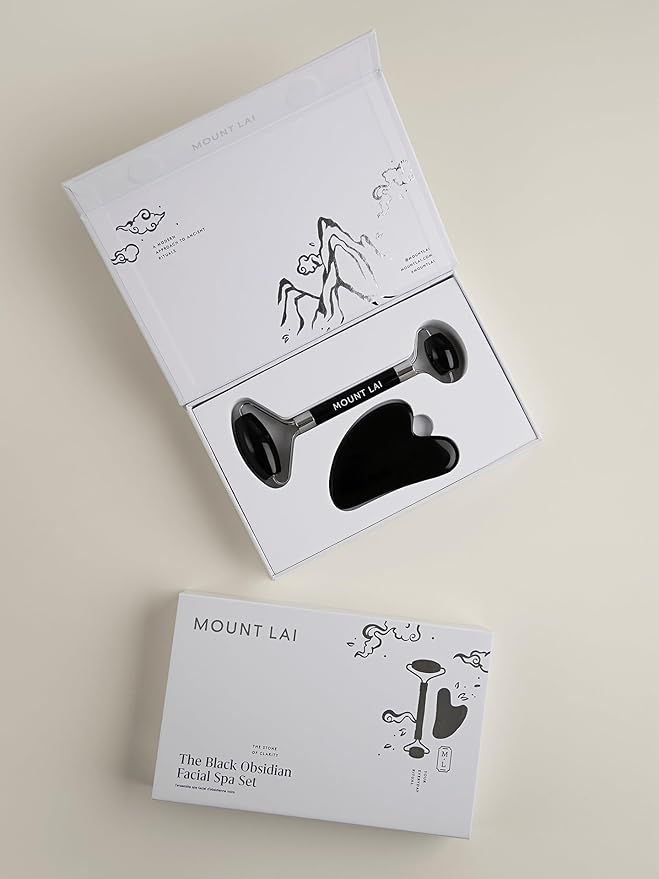 Mount Lai Obsidian Gua Sha Facial Tools, Black Obsidian Gua Sha Facial Tools Set and Roller, Guasha Tool for Face to Relieve Muscle Tension and Reduce Puffiness, Anti Aging Skin Care Sets for Women