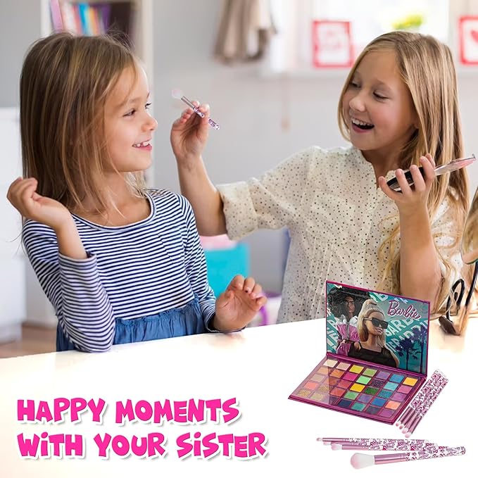 Barbie - Townley Girl 35-Well Eyeshadow Palette, Shimmery and Opaque Colors, Pigmented Blendable, 8 Application Brushes Non-Toxic 8+, Perfect for Parties, Sleepovers & Makeovers