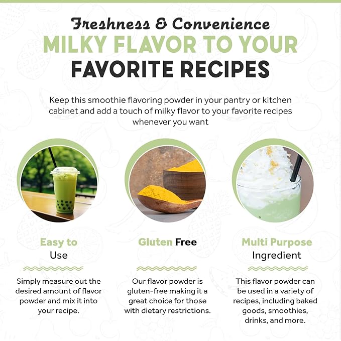 - ๐๐ฅ๐ฎ๐ญ๐๐ง-๐๐ซ๐๐ ๐๐ง๐ ๐ฏ๐๐ ๐๐ง: Our Thai Green flavor powder is gluten-free and vegan, making it a great choice for those with dietary restrictions. It's a versatile ingredient that can be used in a wide range of recipes, including ones that are gluten-free or plant-based.