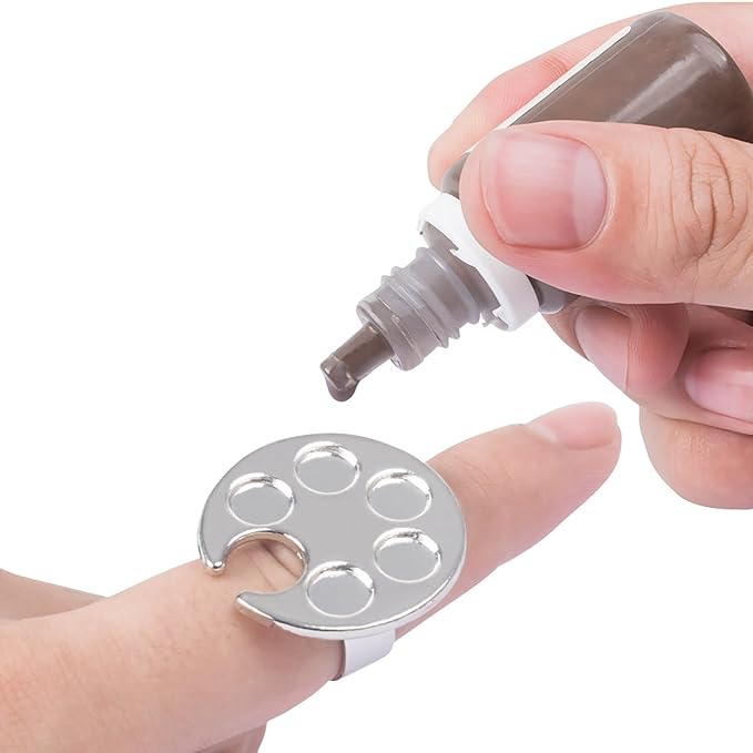 Makeup Spatula Set Stainless Steel, Make Up Tools Mini Mixing Tray with Finger Ring, Round Makeup Paint Palette