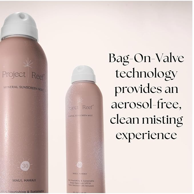 - Sustainable, Non-Aerosol Packaging - Our sunscreen mist is packaged in recyclable aluminum and utilizes non-aerosol BOV (Bag-on-Valve) technology for a sustainable and clean misting experience without harmful propellants. Each purchase from Project Reef removes 1 pound of plastic from the world’s oceans – the equivalent of 22 water bottles – through partner organizations.
