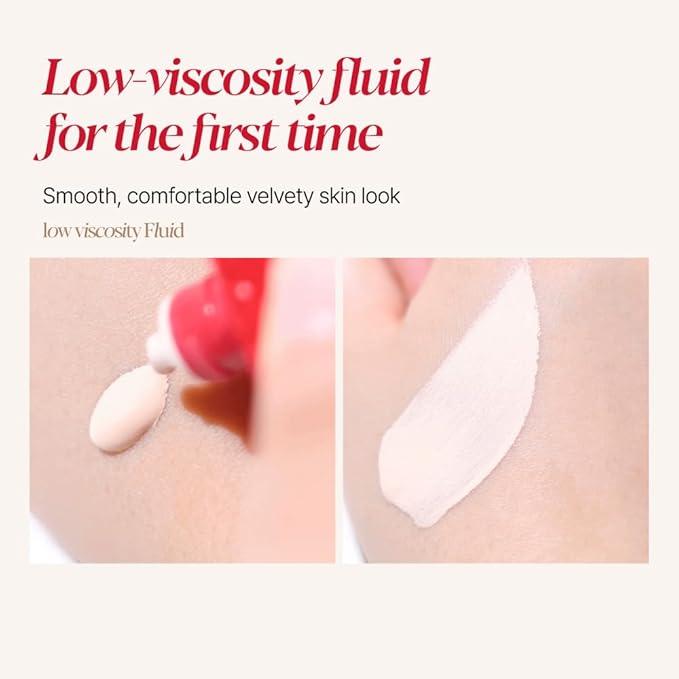 - LOW-VISCOSITY FLUID FOUNDATION : The low-viscosity fluid foundation penetrates thinly and softly, helping maintain skin moisture, preventing dryness, and ensuring comfortable wear