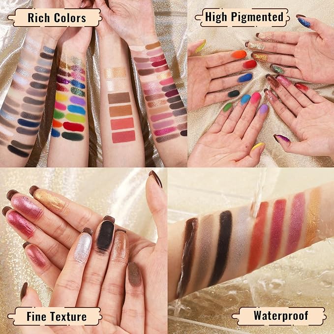 - 【❤Long Lasting and Expertly-Chosen Colors】High quality formula makes it waterproof and last up to 24 hrs even when you are sweating or swimming. Expertly-curated eyeshadow palette contains nudes, oranges, browns, purples, pinks, greens, reds, blacks, blues, yellows, greys in several finishes, rich-toned matte, buttery-like shimmer, blinging glitters. Intense pigments payoff delivers striking impact and light-catching dimension.