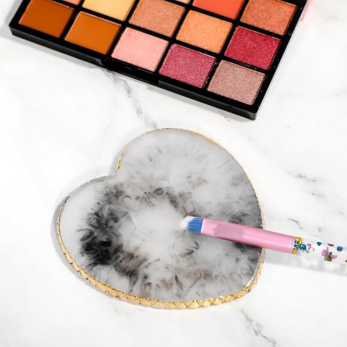 Sibba Resin Nail Art Palette Nail Mixing Palette Polish Color Mixing Plate Golden Edge Nail Holder Display Board Heart Shape Cosmetic Mixing Tools