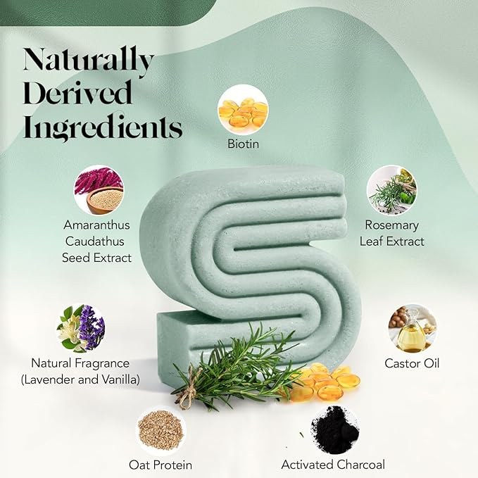 - SAFE & GENTLE FOR ALL HAIR TYPES — pH balanced and free from parabens, phthalates, silicones, and sulfates, this vegan, cruelty-free shampoo bar is safe for color-treated hair and leaves no residue, offering a clean, gentle wash every time.