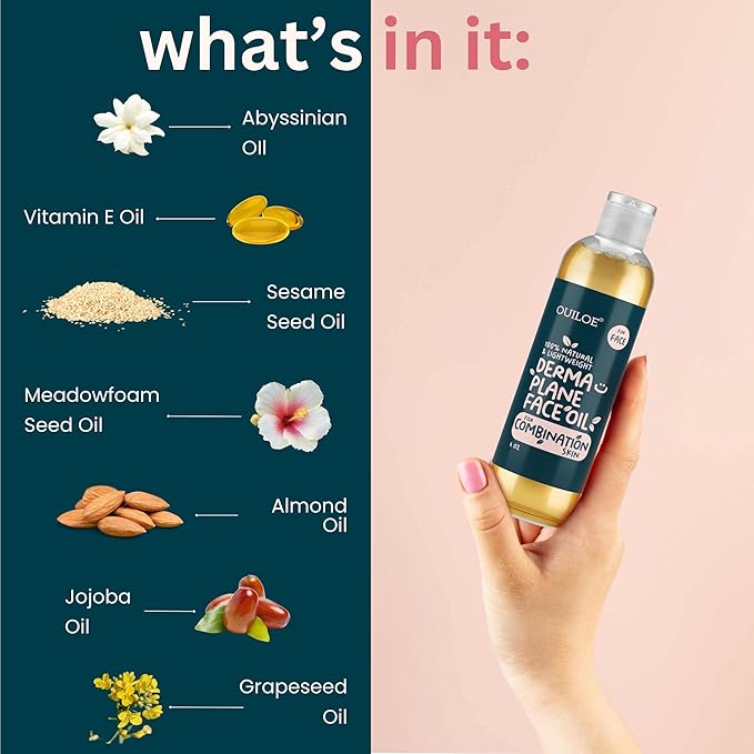 Dermaplane Oil for Combination Skin - Shave Oil for Women, Face Shaving Oil for Women, Use with a Dermaplaning Tool, Razor, Shaver or Microblade for Close Shave 2 oz by Ouiloe