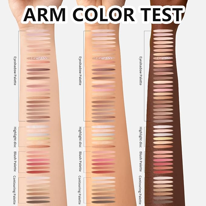 - - Get creative with 43 vibrant shades in the Narsen 4-Layer Book-Style Makeup Palette Set! From subtle daytime looks to bold evening glam, this one palette has you covered with versatile eyeshadows, sparkling highlights, seamless contours, and popping blushes.
