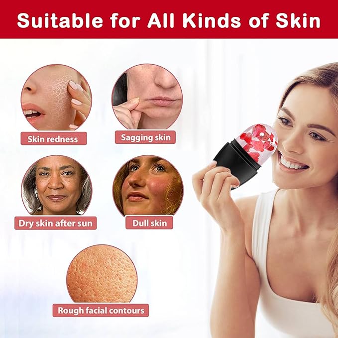 - 🙌🏼 EASY TO USE: Fill the ice roller massager mold with water. Freeze in refrigerator for more than 4 hours,when using it apply the ice to your skin in 30 second intervals in circular motions. For optimal results, It is recommended to use 1 or 2 times a day.