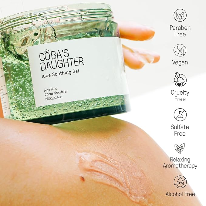 COBA'S DAUGHTER 99% Pure Aloe for Sunburn Relief & After Sun Recovery| Coconut Scented Aloe Vera Gel |Organic Aloe Vera Gel for Face & Body - Hair Hydration & Cooling Lotion (10.6 oz)