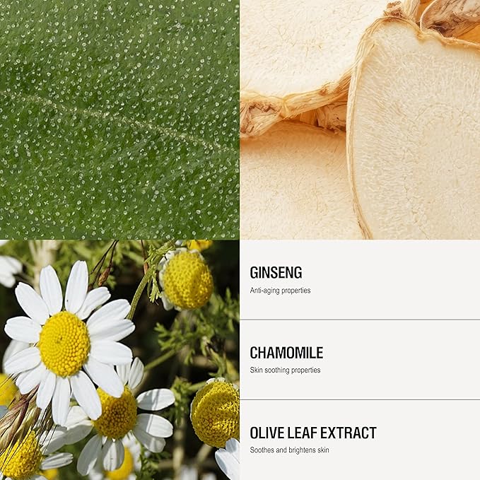 - REFRESHING. Refine the appearance of pores and even skin tone with this alcohol-free balancing tonereith free-radical fighting antioxidants, skin-soothing and hydrating natural ingredients Ginseng, Chamomile and Aloe Vera, Fully refreshed, instantly lifted and radiant glow.