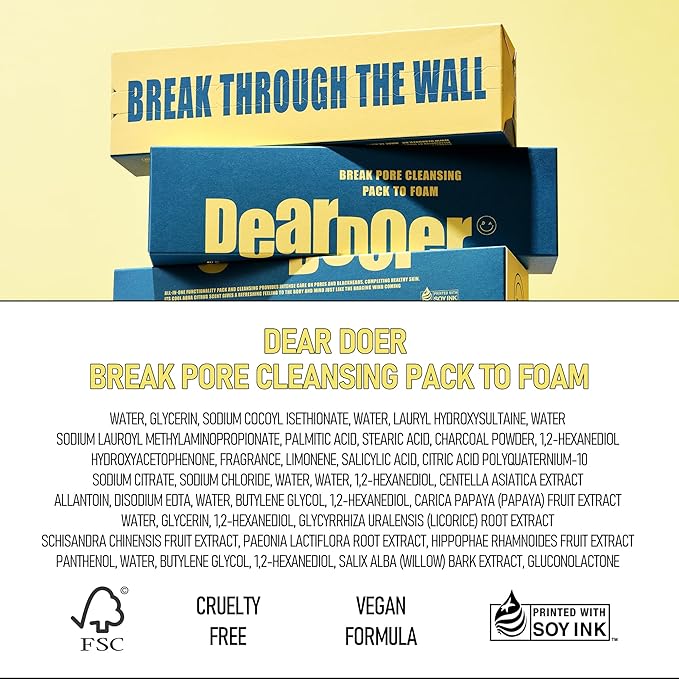 - 🟡 1-MINUTE DEEP PORE CLEANSE: Purify your pores and refresh your skin with a quick 1-minute daily ritual powered by Charcoal Powder. Papaya Extract teams up with AHA, BHA (Salicylic Acid), and PHA to gently exfoliate dull skin and loosen buildup. It starts as a creamy, clay-like mask—just add water, and it transforms into a luxurious mousse-like lather.