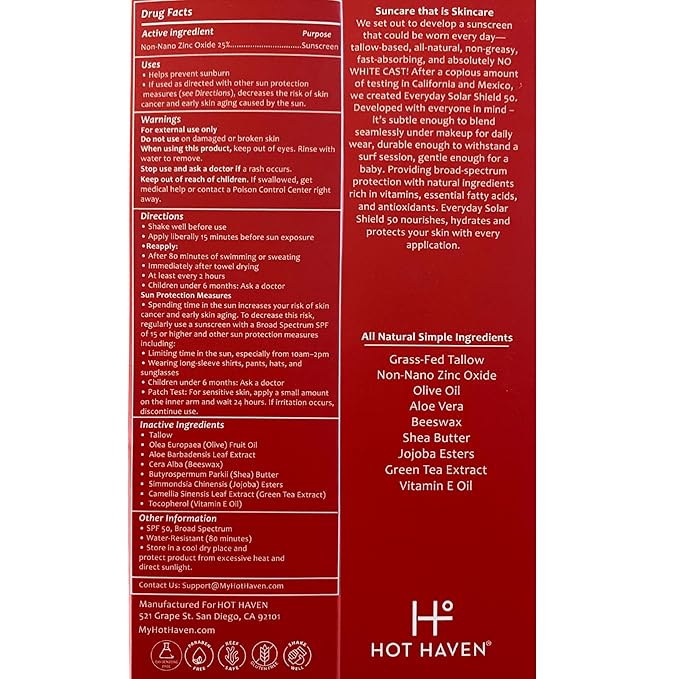 - 100% NATURAL, EVERYDAY SUN PROTECTION – Our SPF 50 Tallow Sunscreen is perfect for daily wear, providing broad-spectrum protection against UVA and UVB rays while deeply nourishing your skin with Grass-fed Tallow and Non-Nano Zinc Oxide.