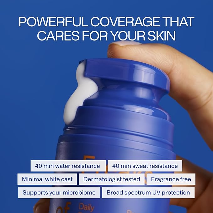 - Product Benefits : SPF 30, broad spectrum UVA/UVB protection, water resistant for 40 minutes, hydrating, supports healthy skin microbiome SPF 30, broad spectrum UVA/UVB protection, water resistant for 40 minutes, hydrating, supports healthy skin microbiome