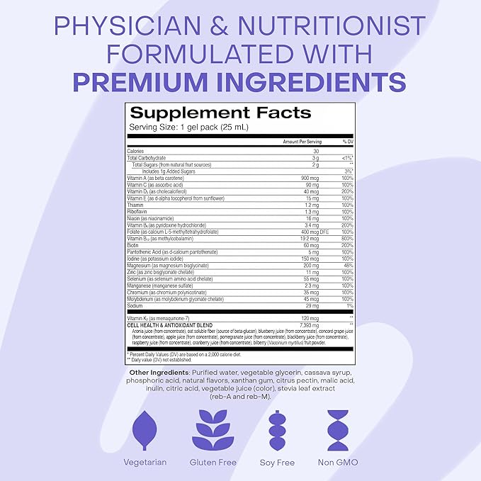 - On-the-Go Nutrition & Whole-Body Wellness: Compact and convenient, these gel packs are easy to take on the go for complete micronutrient support to boost vitality and well-being no matter where you are.