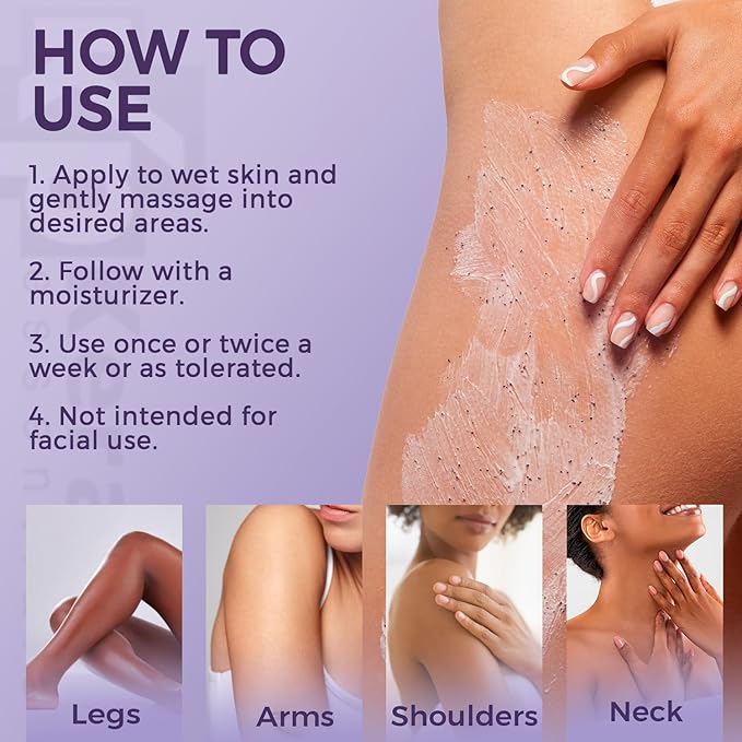 - Smooth, Cream-Based Formula – No Harsh Scrubs: Designed with small abrasive particles, this body treatment features a creamy consistency that glides onto skin for a more gentle exfoliation experience. Ideal for those who prefer non-gritty alternatives.